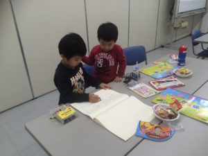セミナーと工場見学中、お子さんはとなりの部屋でお絵かきに紙飛行機に