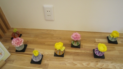 おじいちゃん手作りのいすの上に飾らせていただきました。
