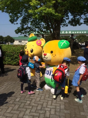 子供たちは、愛媛のイメージキャラクターの『みきゃん』と