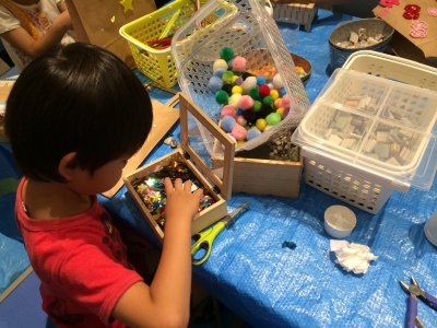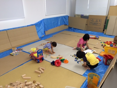 子供たちも、積み木やブロックなどで自由に遊んでいました。