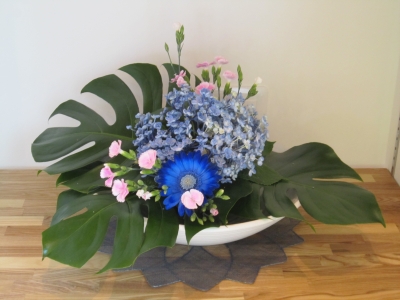 アジサイ・ナデシコ・めずらしい色ブルーのガーベラ・モンステラ