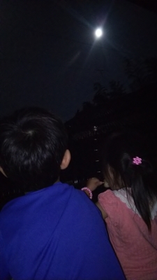 雲がないせいもあって、いっそう光って見えるお月さまにこどもたちもウットリ。。。