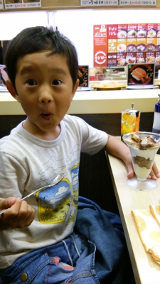 好きなお寿司を食べ、パフェも食べ、ご満悦!