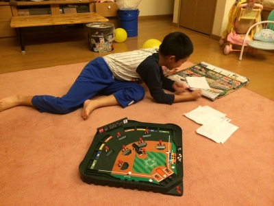 西川建設 福田です。 昨日の夜は、少し時間に余裕があったのでコウダイと 野球盤ゲームをしました。 自分も子供の時に持っていたと思いますが、 昔とほとんど変わらない、アナログな野球盤。 しかし、やってみると意外に難しく楽しい・・・。 点を付けるのに、必死なコウダイ。 ゲームでも本気で勝ちたいみたいです。 しかし結果は、大人げなく僕がサヨナラ勝ち。 実際の野球でも、このくらい必死でプレーをして欲しいものです。