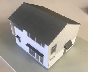 先週紹介させていただいた模型は、屋根や庇も取り付けました。