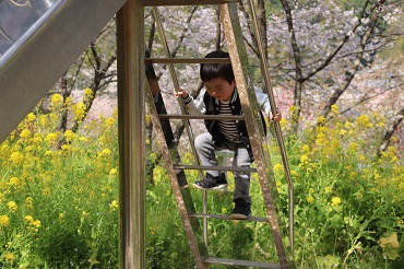 花の道をたくさん歩き、登り、休憩所でおやつを食べたり滑り台で遊んだり。