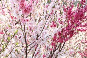 花桃は同じ木なのに枝によって花の色が薄かったり濃かったりと異なり、