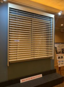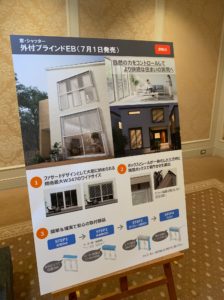 窓の外側に、シェードやスダレでなく外付けブラインド。