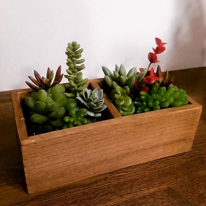 少し前から会社のテーブルや手洗い器のところに多肉植物のアレンジが置かれています。