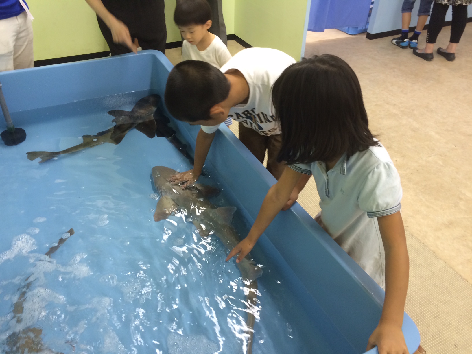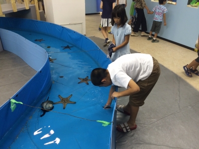 ヒトデやウニ・貝など海辺の生き物に触れる事が出来ました。