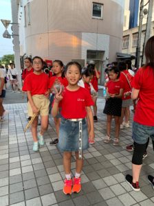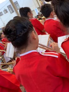 川之江小学校の金管バンドに所属している、次女のリコがオープニングに参加するため