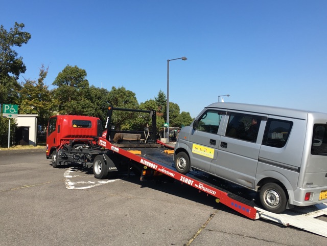 福田さんの車はトラックに乗せられてドナドナ。。。