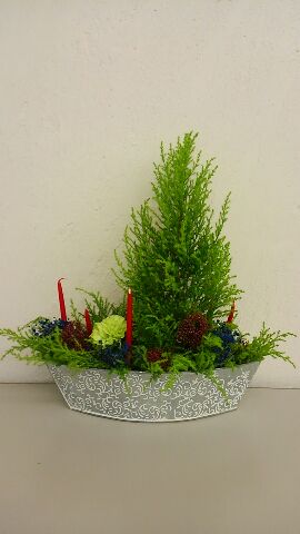 クリスマスのアレンジのキャンドルを取り除き水引を加えました。
