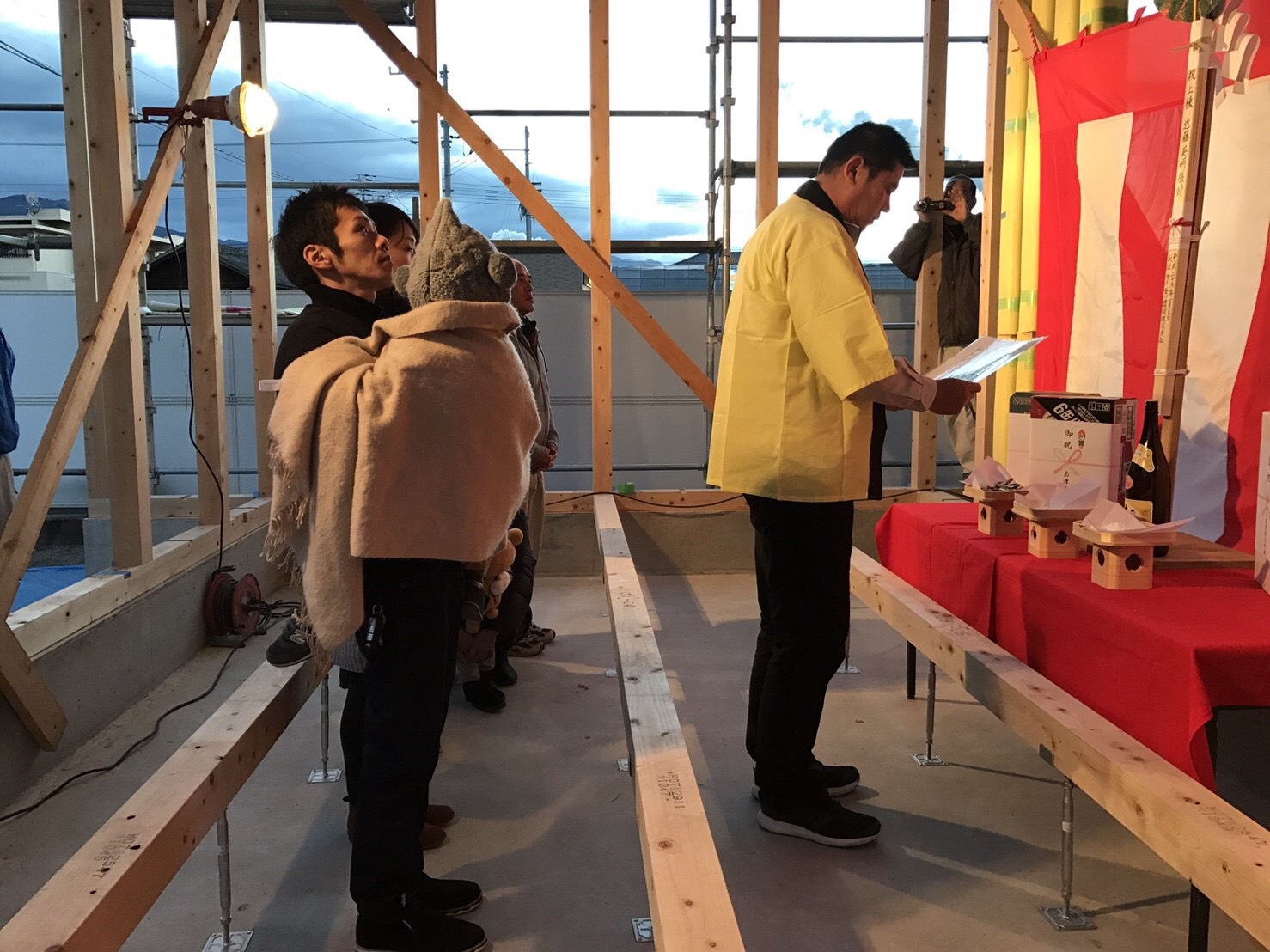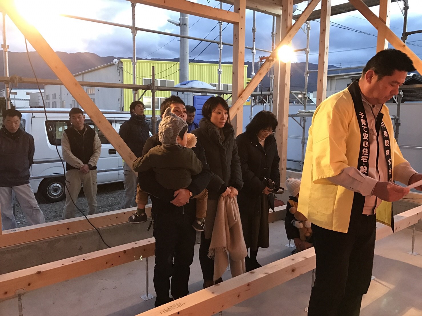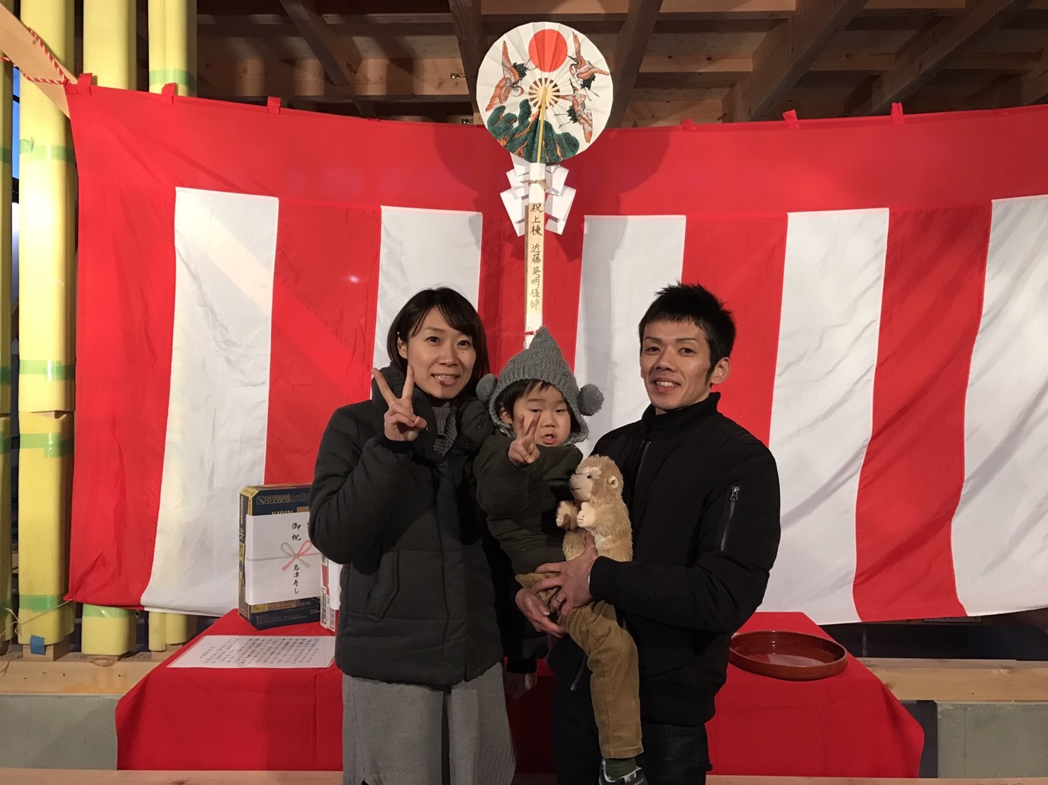 ご家族と大工さんも一緒に、上棟式です。