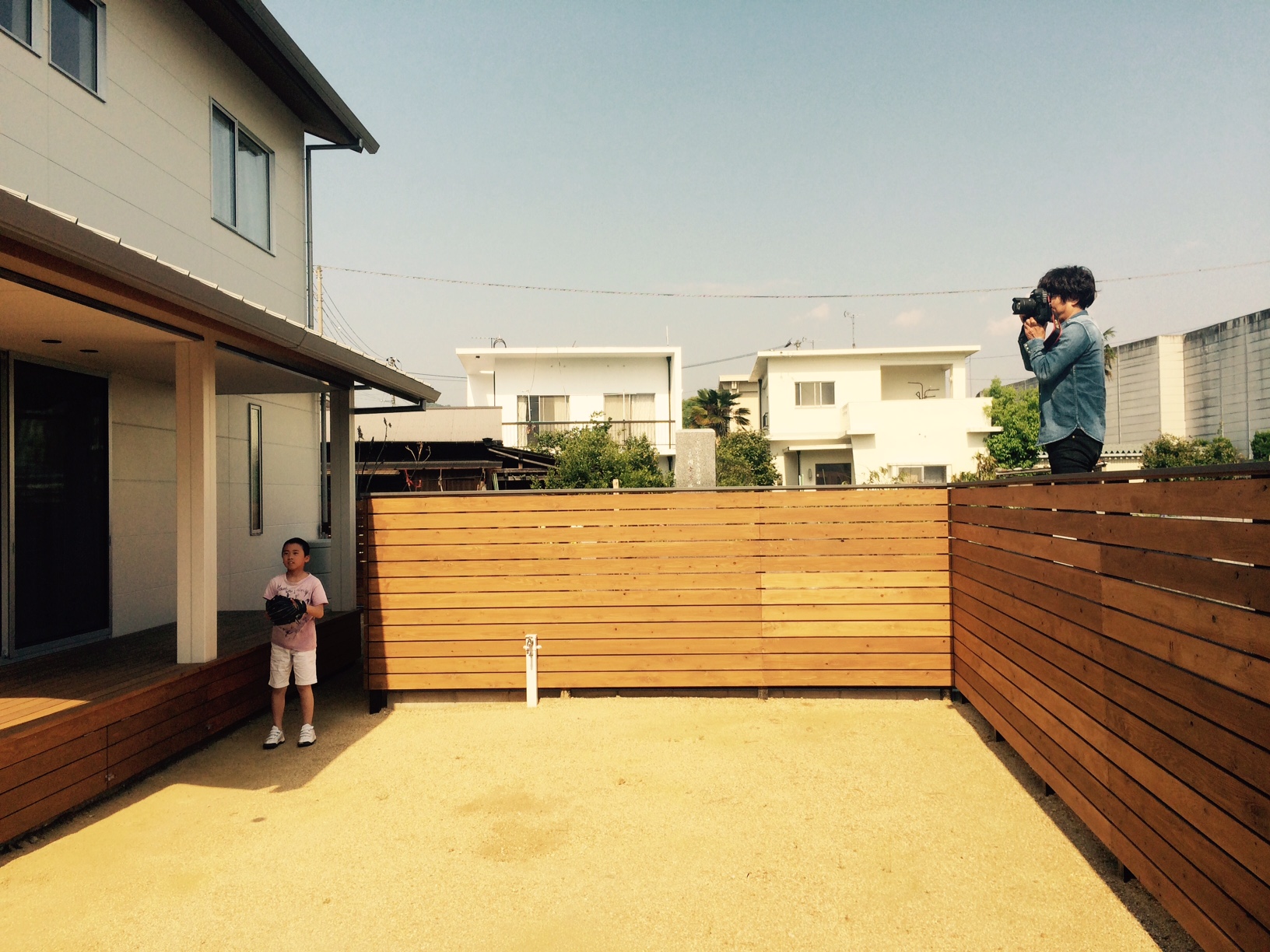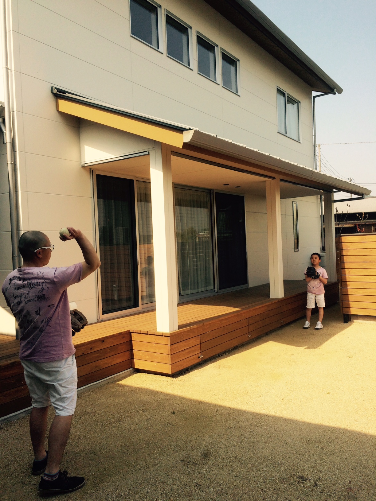 最後に、広いお庭でお家を背景にキャッチボール。