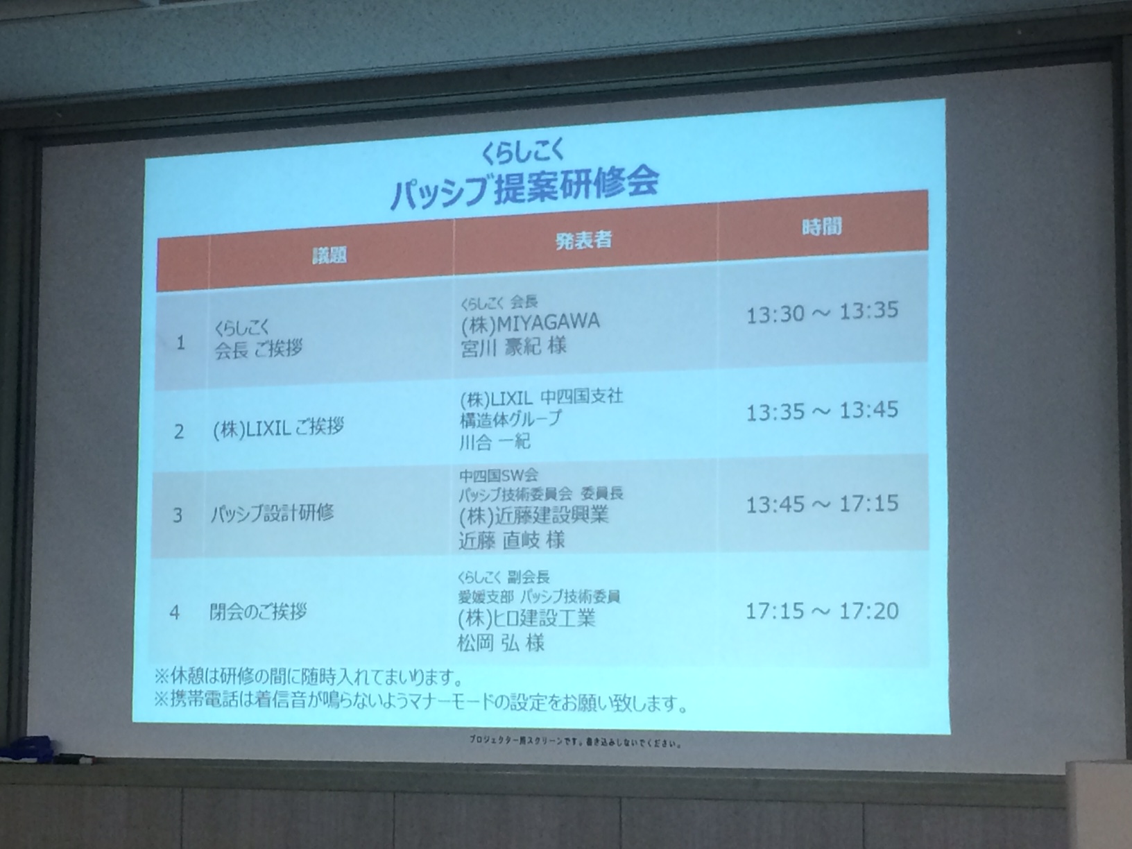 今回はこの『くらしこく』主催のパッシブ設計研修に