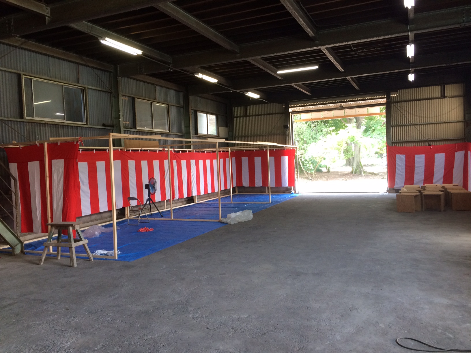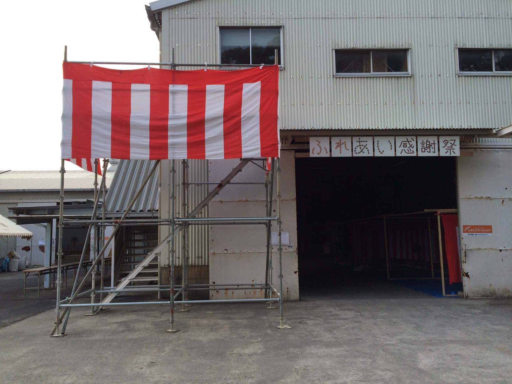 休憩コーナーのテントやこども縁日コーナーの飾り付け。