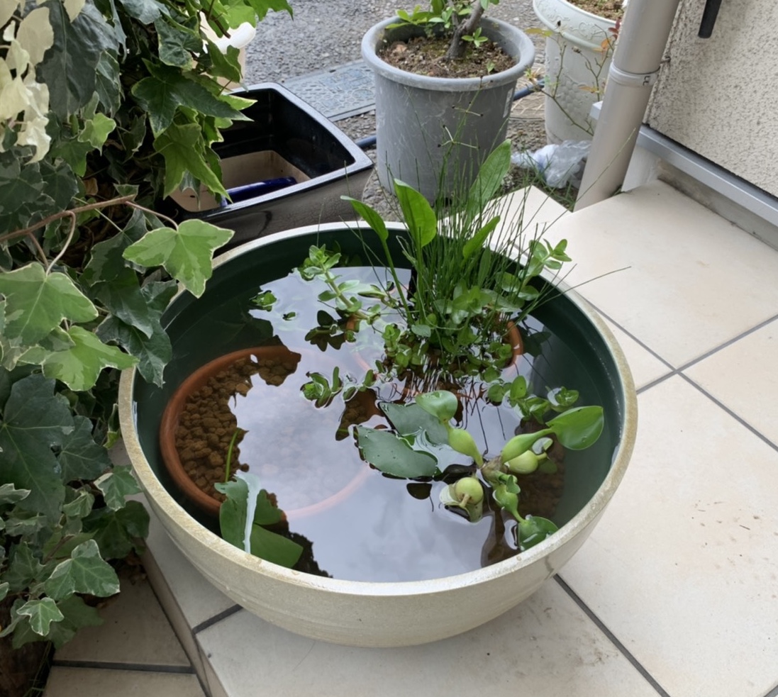 そうしていつの間にやら風情たっぷりのメダカの住処が完成し