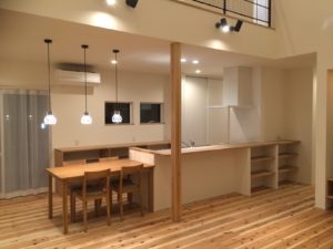 キッチンは、西川建設定番となりつつあるI型でダイニングと続きにして便利に使え