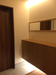 玄関ホールは、間接照明でオシャレな空間になりました。