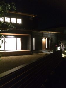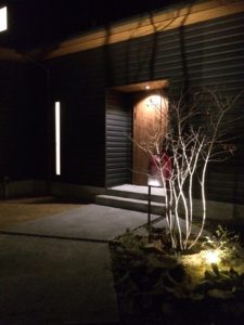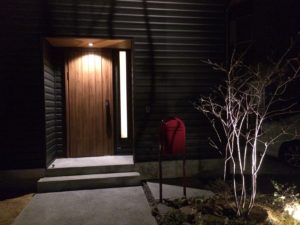 玄関アプローチと庭のライトアップはバランス良く仕上がりました。